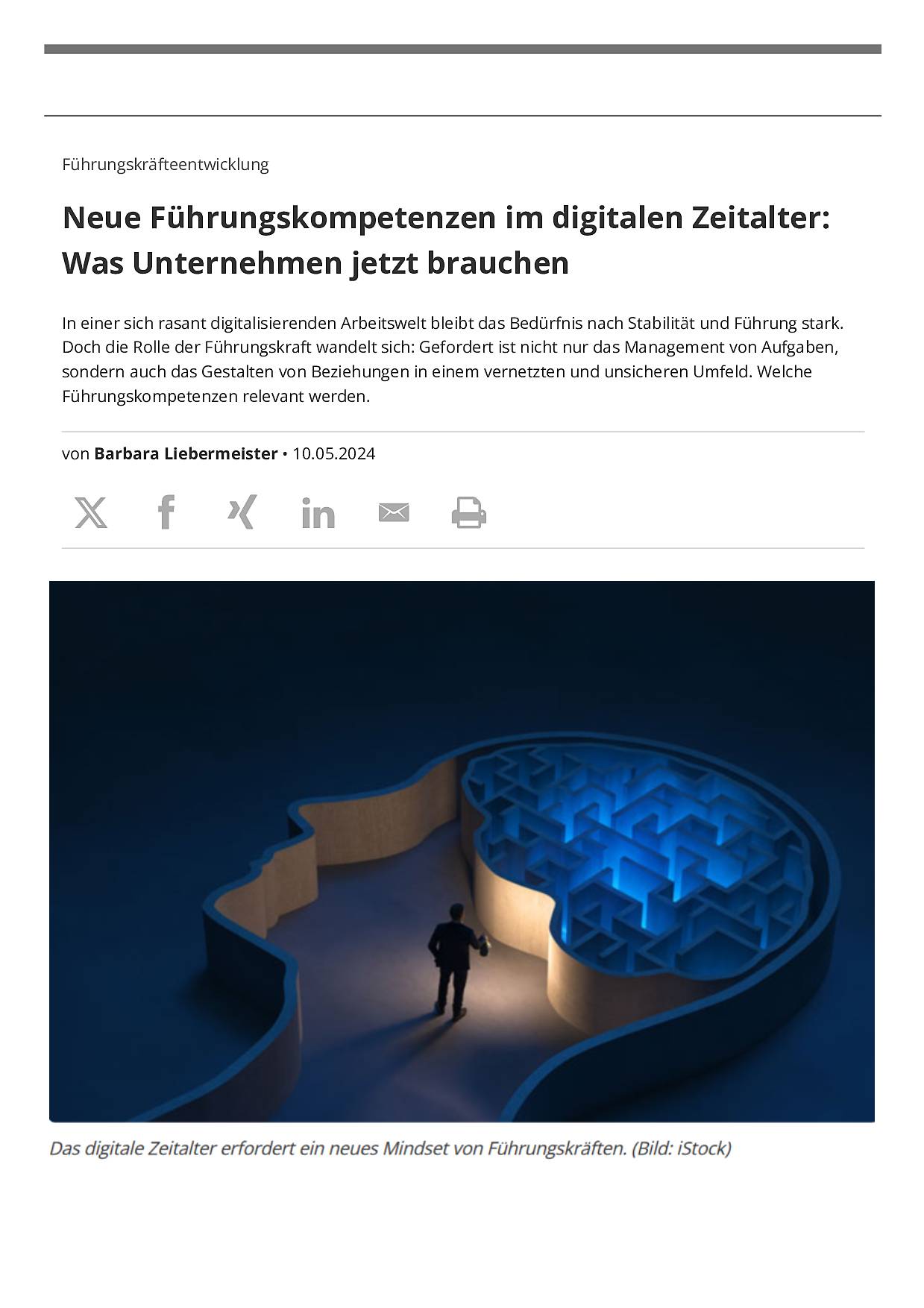 In einer sich rasant digitalisierenden Arbeitswelt bleibt das Bedürfnis nach Stabilität und Führung stark. Doch die Rolle der Führungskraft wandelt sich: Gefordert ist nicht nur das Management von Aufgaben, sondern auch das Gestalten von Beziehungen in einem vernetzten und unsicheren Umfeld. Welche Führungskompetenzen relevant werden.
