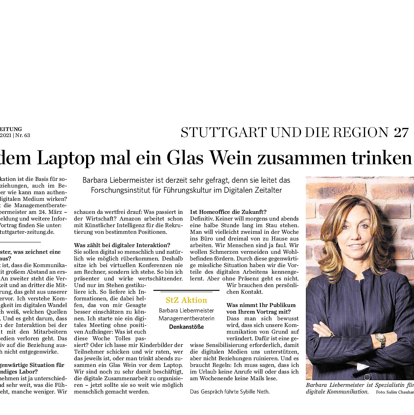 Aus: „Stuttgarter Zeitung“, März 2021 Interview mit Barbara Liebermeister