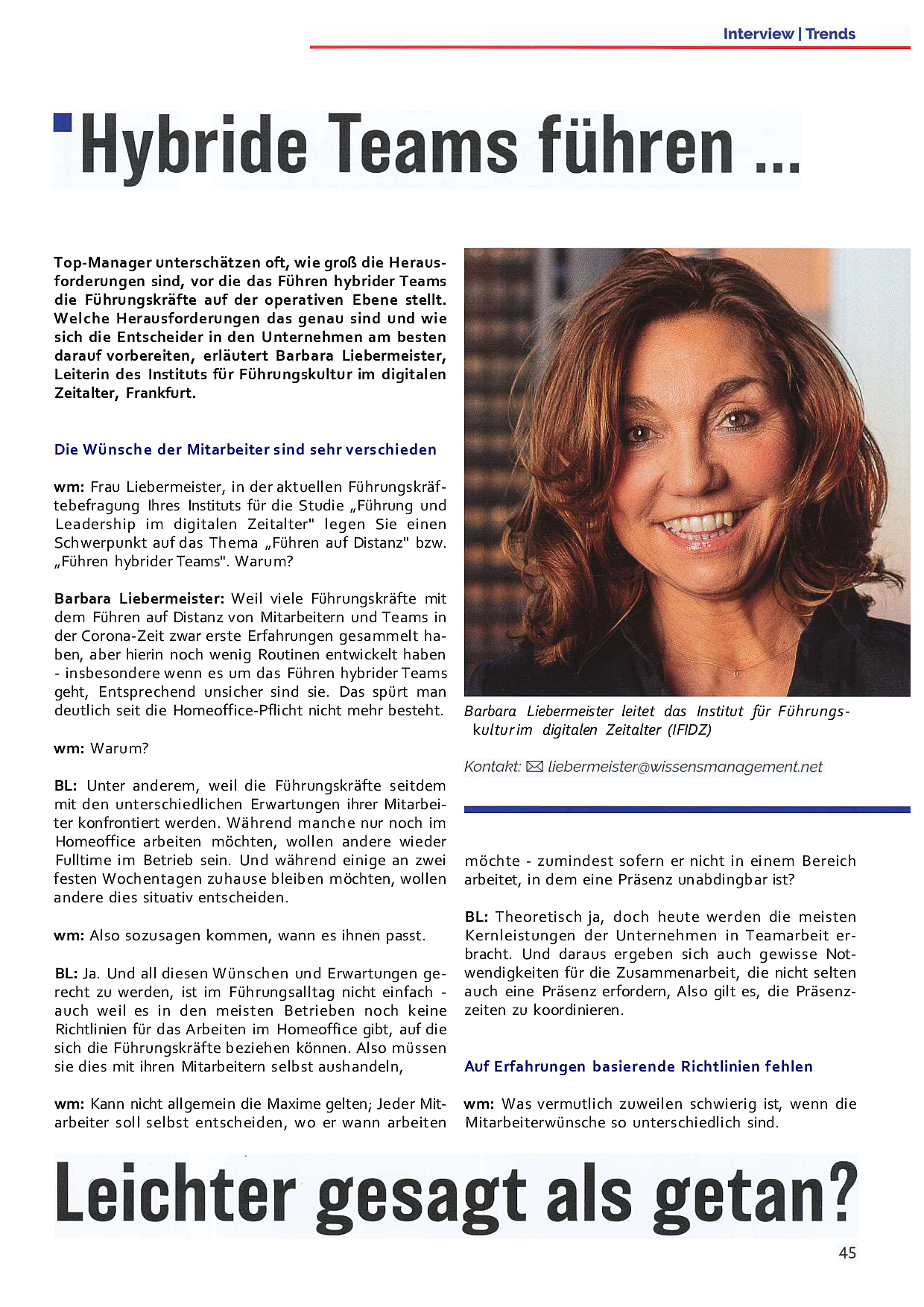 Aus: „Wissensmanagement“, Dezember 2021; Interview mit B. Liebermeister