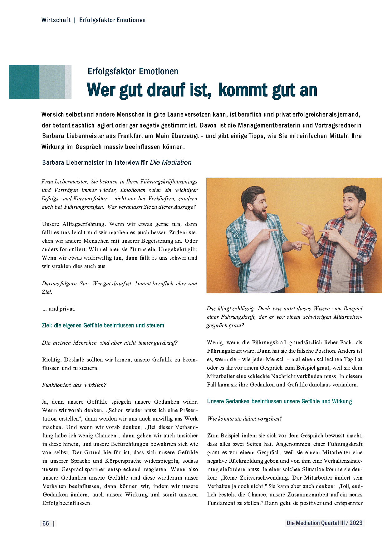 Aus: „Die Mediation“, Juli 2023; Interview mit B. Liebermeister