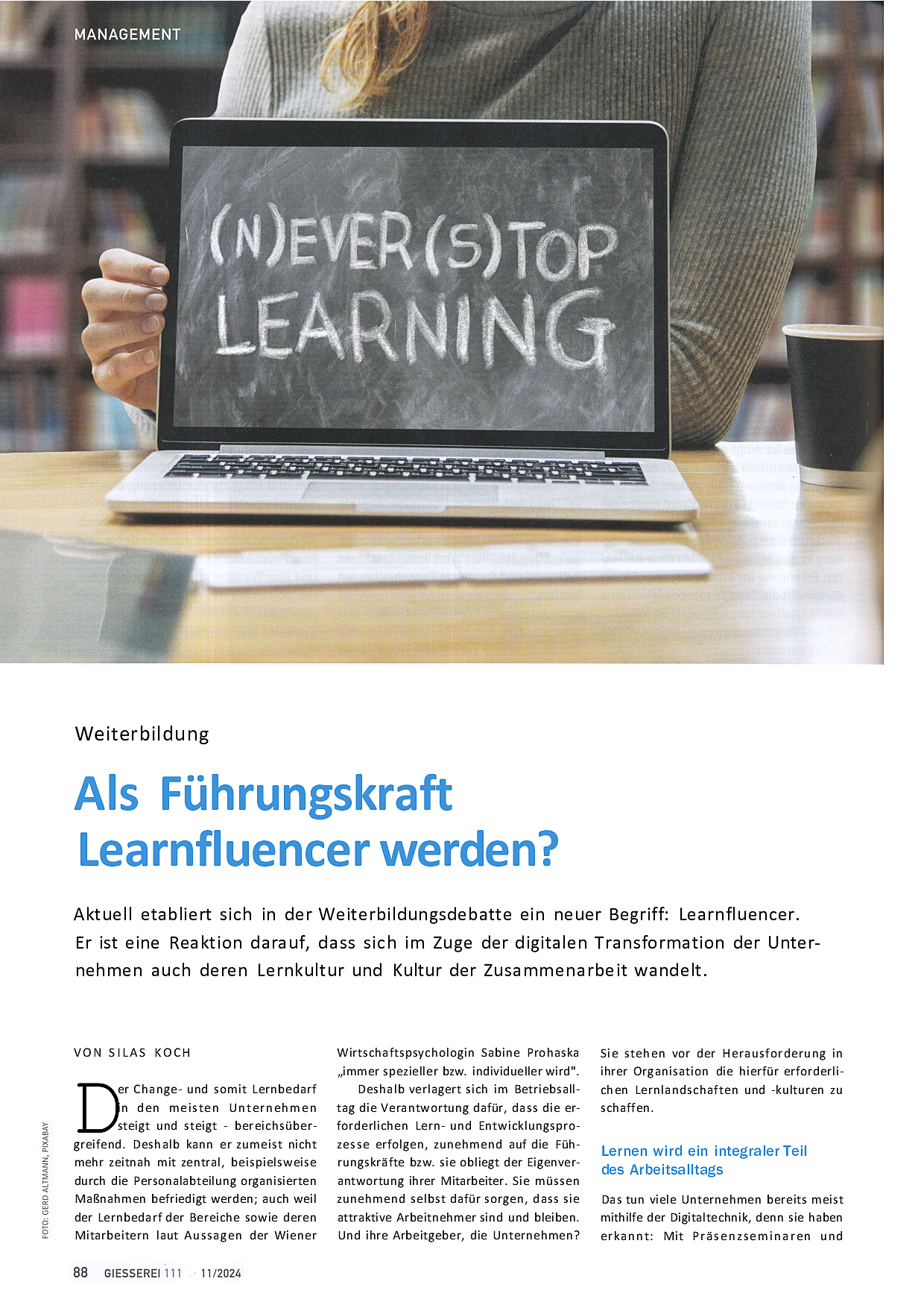 Aktuell etabliert sich in der Weiterbildungsdebatte ein neuer Begriff: Learnfluencer. Er ist eine Reaktion darauf, dass sich im Zuge der digitalen Transformation der Unternehmen auch deren Lernkultur und Kultur der Zusammenarbeit wandelt.